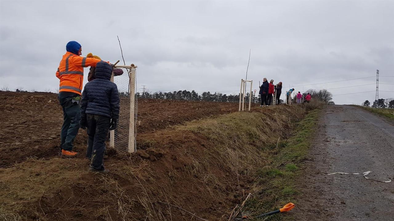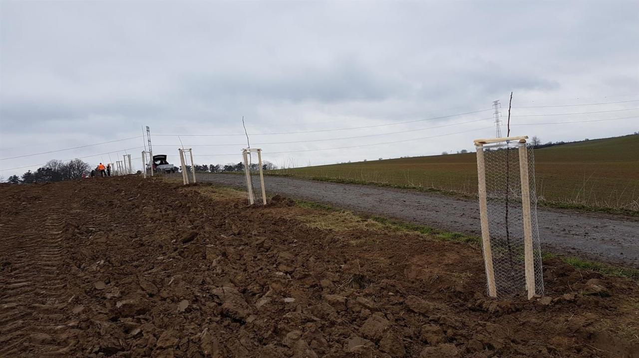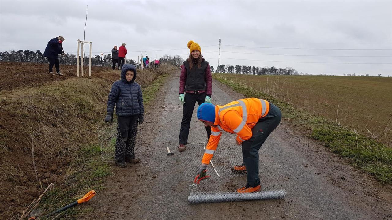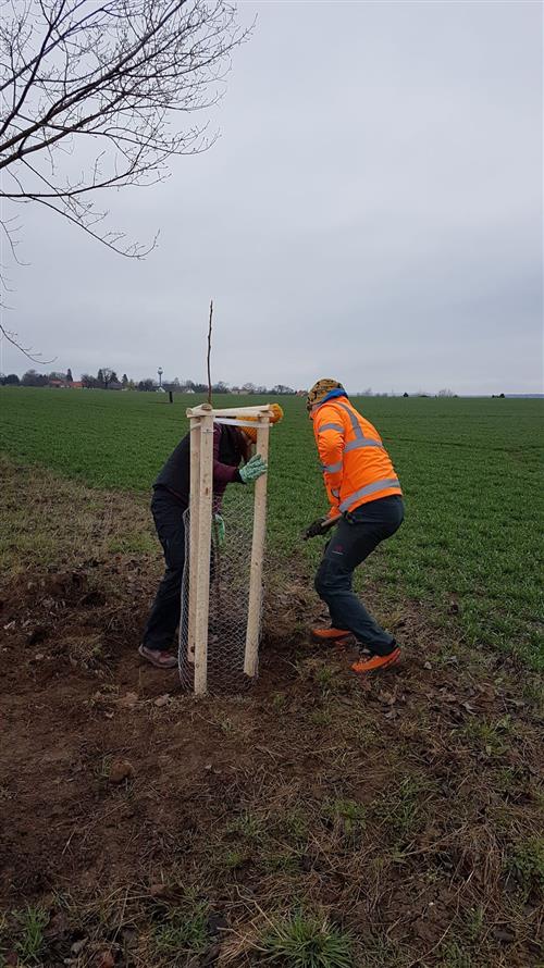 Na jaře roku 2021 jsme opět ve spolupráci se Sázíme stromy, zasadili za silné nepřízně počasí 25 ořešáků jako doplnění aleje za Nosticovým křížkem a dále po hraně pole na okružce vedoucí směrem do "ouvoza". Poděkování rodině Fajfrových z Benátek nad Jizerou a rodině Pakostových z Luštěnic a rodině